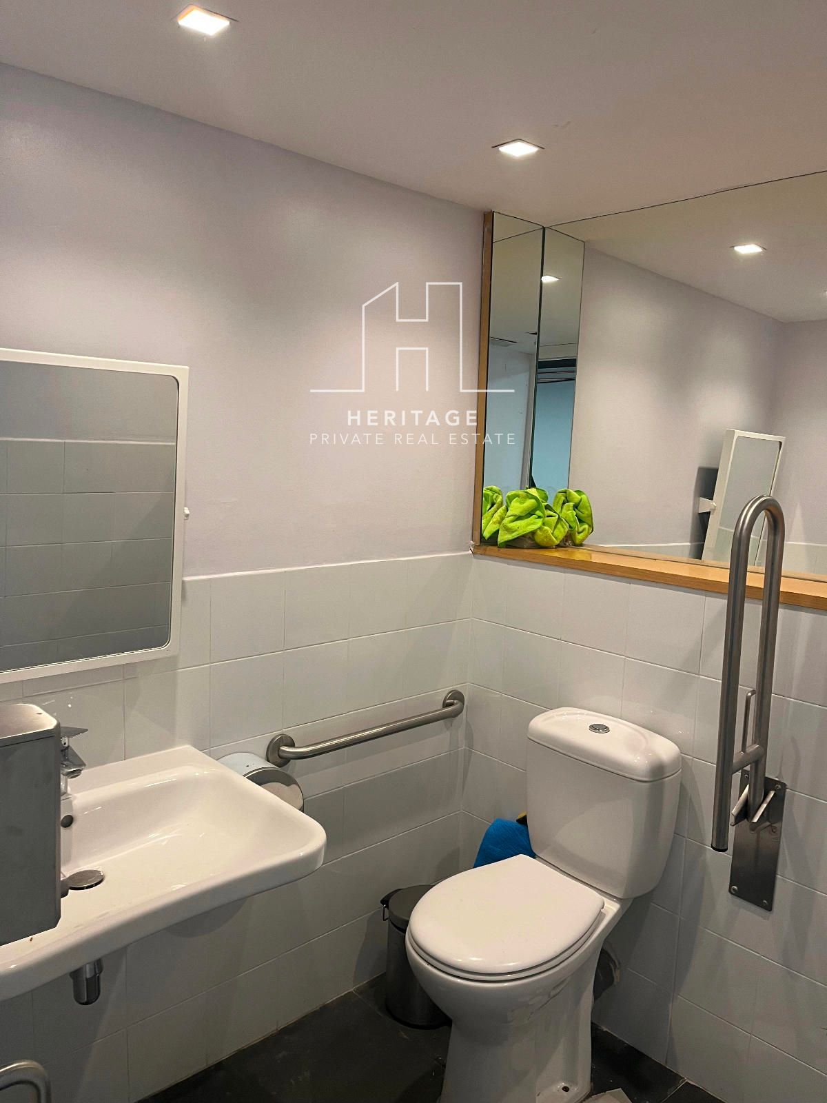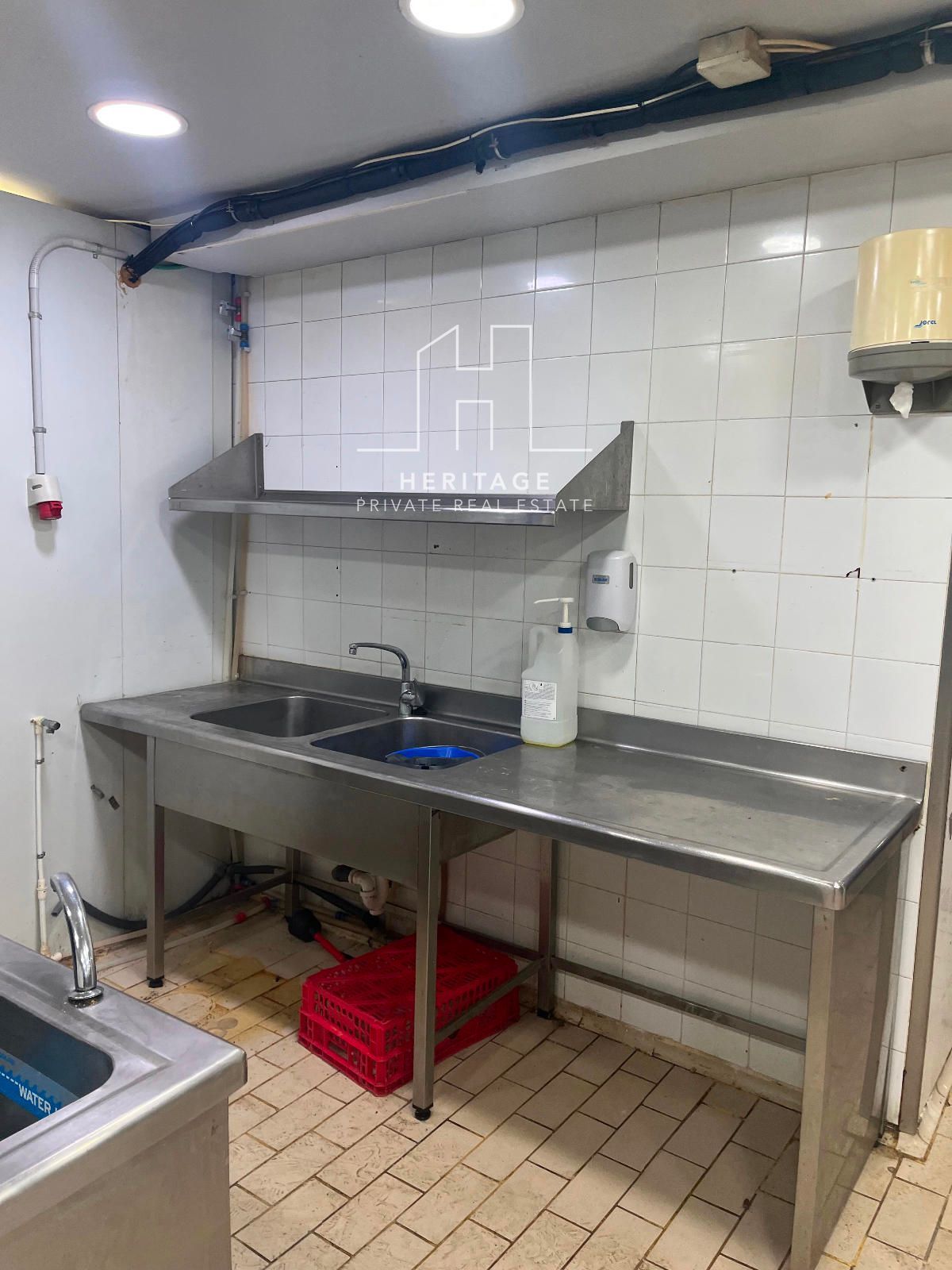 Tres lavabos casi nuevos (uno de ellos adaptado para discapacitados) y, al lado, una gran puerta donde a través de un amplio pasillo se llega a una cocina totalmente equipada y acondicionada para iniciar la actividad.